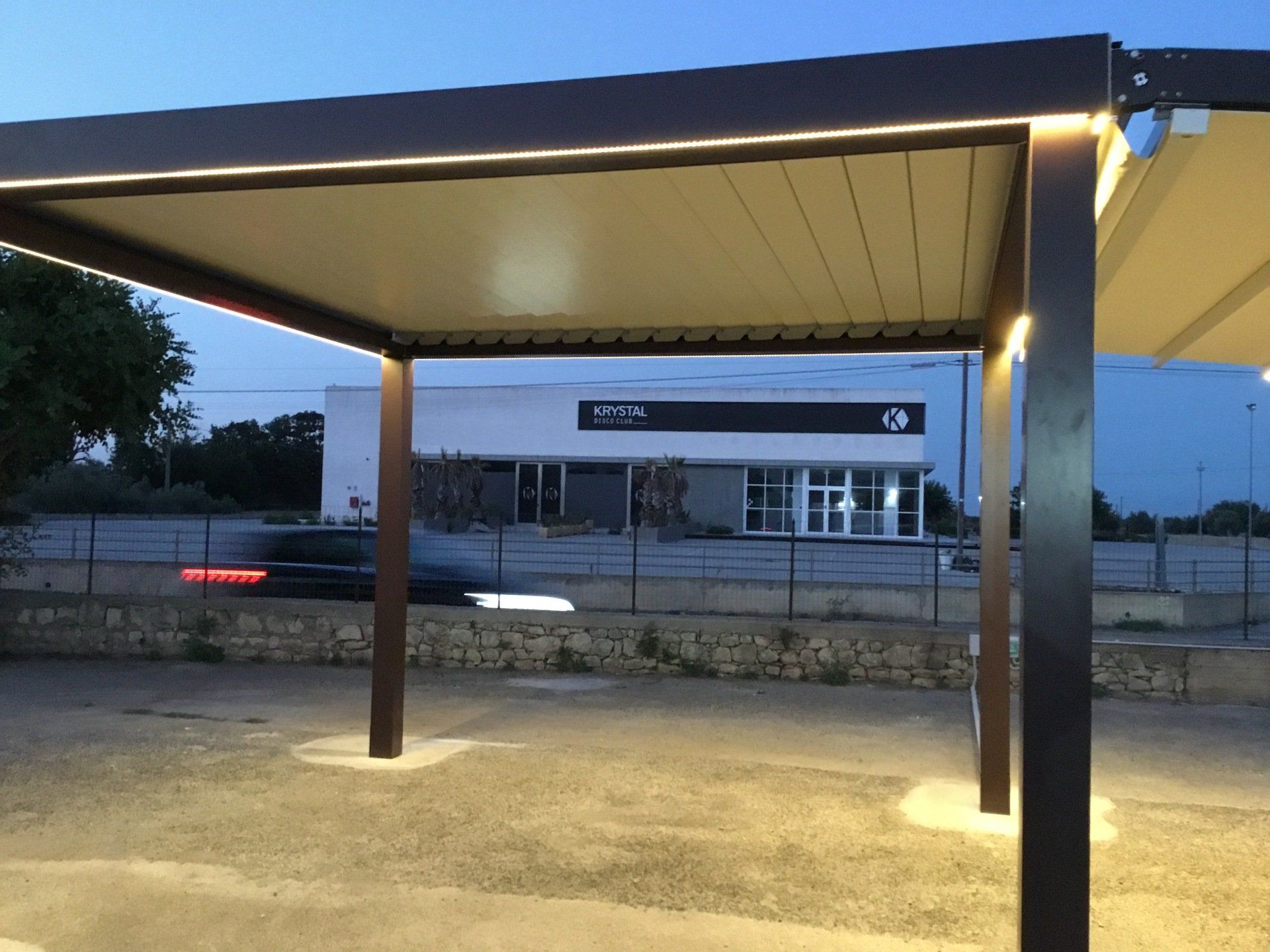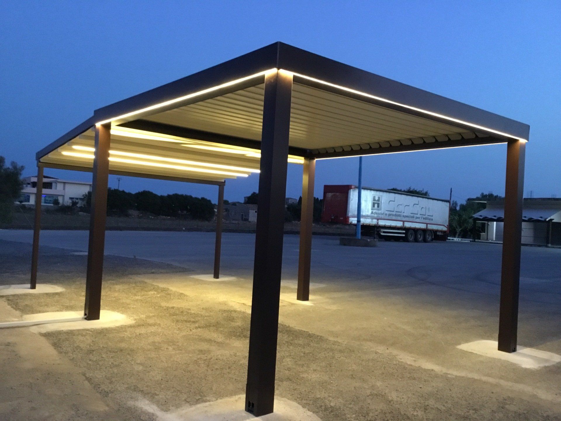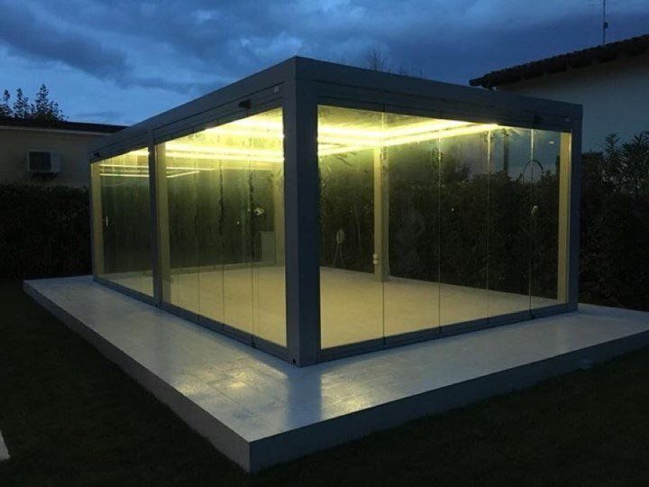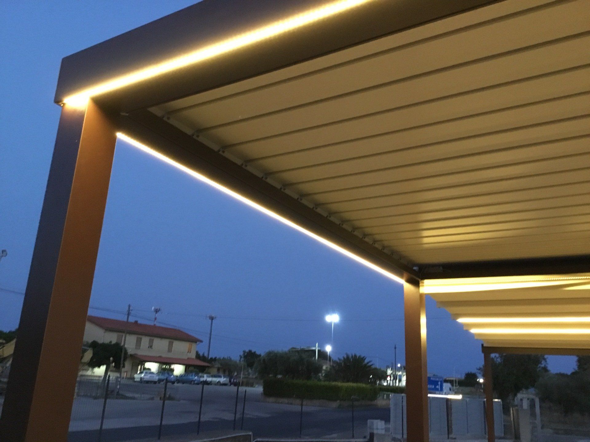 - Tettoia orientabile con lamelle in alluminio rotanti da 0° a 140°.